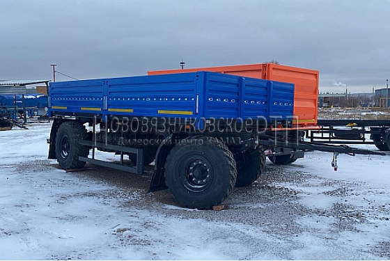 Этот прицеп имеет металлическую сварную платформу прямоугольной формы, откидные задние и боковые борта. Вместимость - 15 европаллет.