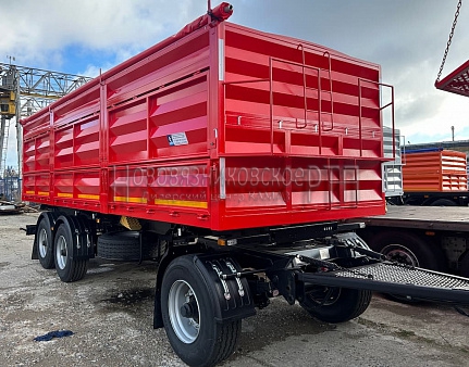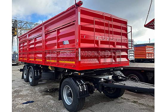 Трехосный самосвальный прицеп используется для транспортировки зерна и сыпучих грузов.